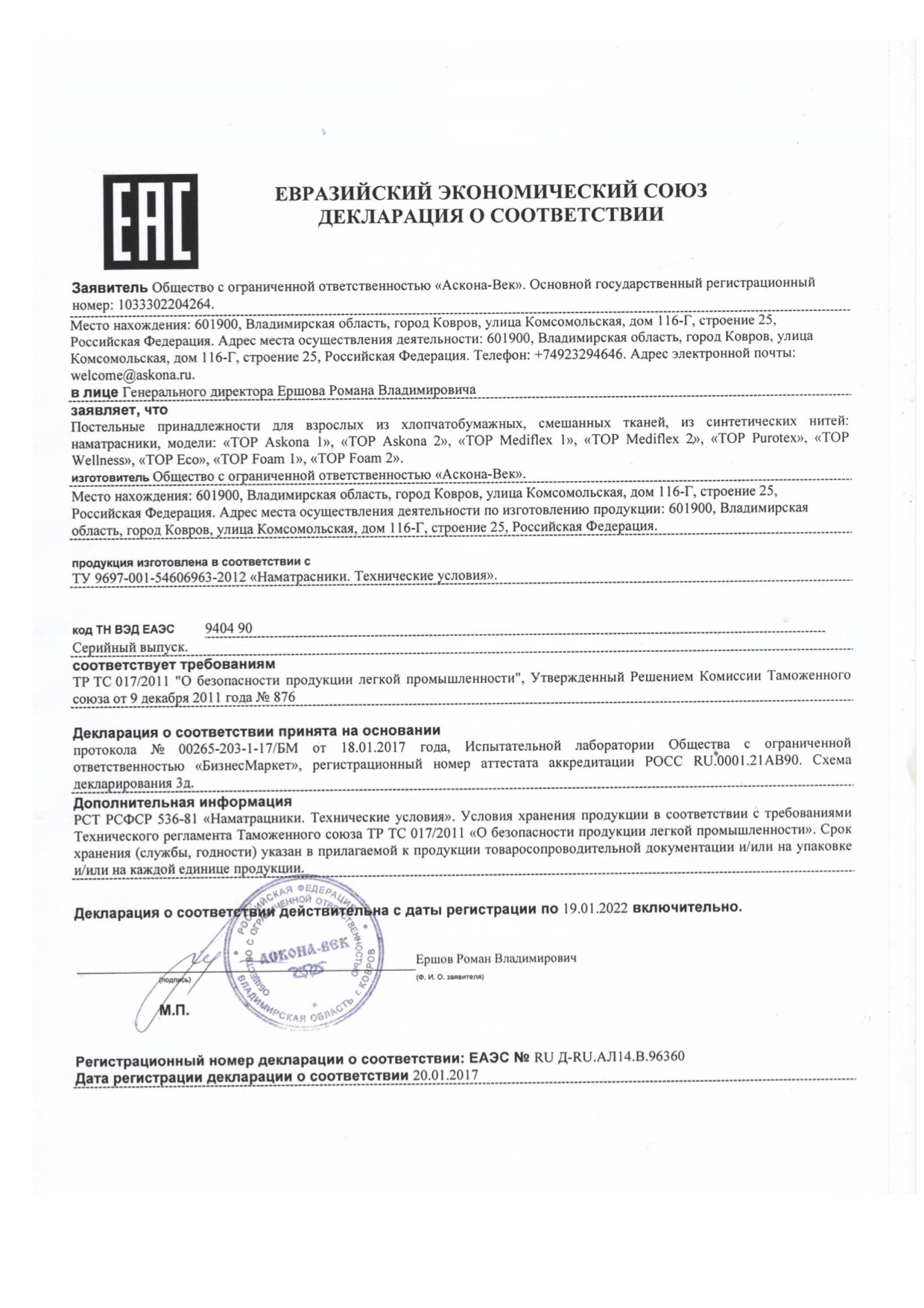 Сертифицированная продукция
